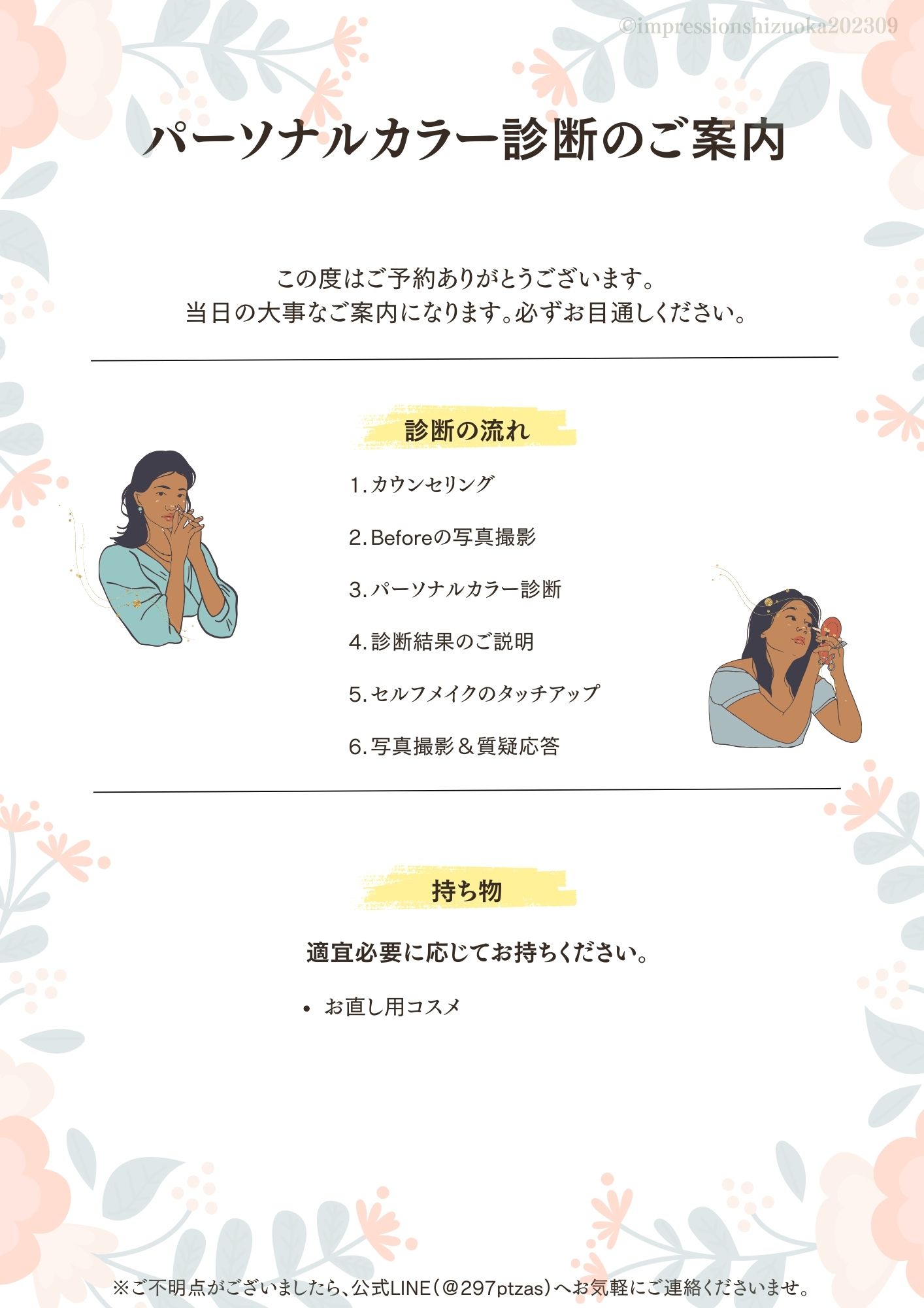 【ご予約者様へのご案内】パーソナルカラー診断