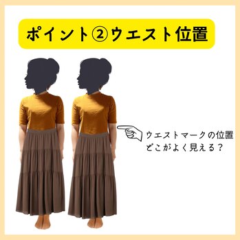ポイントは「半端丈トップス、ボトムスがどう見えるか。」「ウエストマークはどこにあるとスタイル良く見えるか」でした。