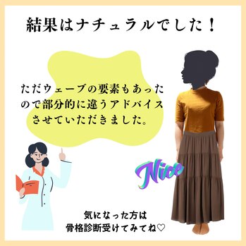 しかし顔タイプ診断とパーソナルカラー診断の結果を踏まえると元々部分的にあった【骨格ウェーブ】をアレンジした方が分かりやすいと思ったので、そちらも併せてご説明させていただきました。