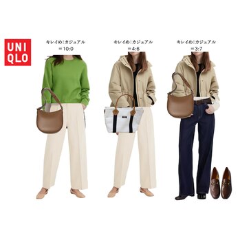 ご質問でいただいた「カジュアルにしたい時」は、キレイめ要素を入れることが大事になります。ユニクロのお洋服だとこんな感じです。ソフトエレガントさん代表の松嶋菜々子さん、吉高由里子さんもお似合いになりそうじゃないですか?