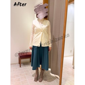まずはパーソナルカラー診断の結果、鮮やかなカラーがお得意と伺ったので、