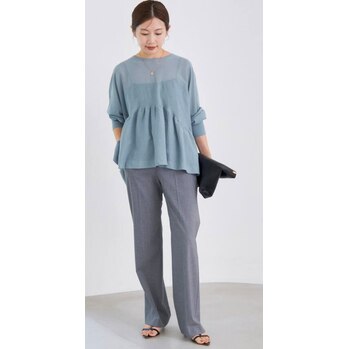 肋の位置あたりで絞られるようなペプラムが多いので、その時は首元が開いているデザインで立体感に抜け感を出すことができます。またサイズはピッタリしない方が良いです。