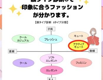 【お客様レポート】 診断結果が出てからクローゼットのお洋服について聞きたい!とご要望をいただきました。 (クローゼットやお手持ちアイテムのご相談はリピーター様特別メニューとなりますので、ご来店時お問い合わせくださいませ。 … 続きを読む 【お客様レポート】顔タイプ診断